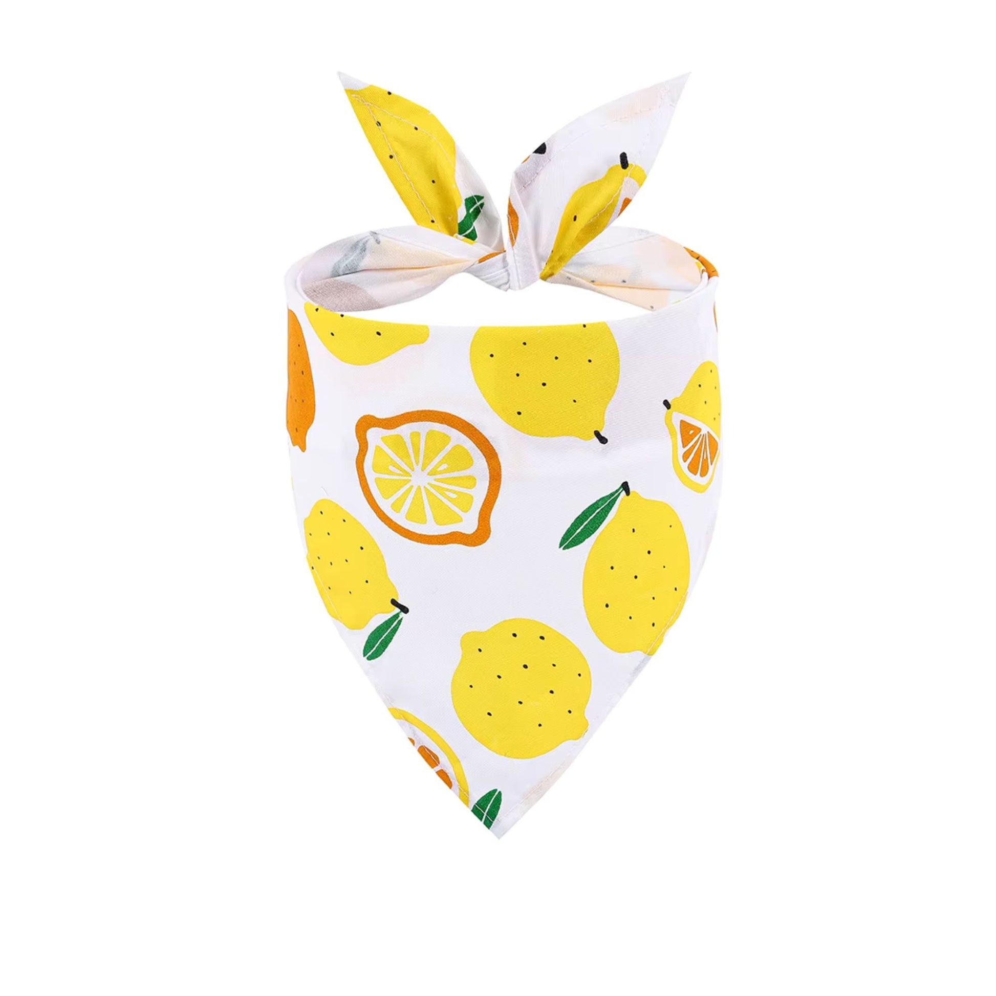 - TIE-ON DESIGN – Easy fabric ties adjust to fit perfectly and stay secure during farmers market visits, sunny walks, and outdoor brunch dates. No slipping while your cheerful pup spreads good vibes, no readjusting needed—just tie it on and let the citrus energy shine. Works with or without a collar for versatile styling.