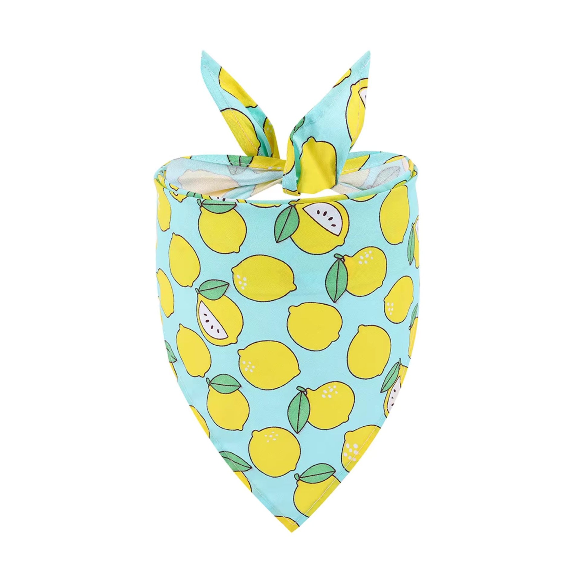 For the dog who makes life sweeter. This turquoise bandana is packed with bright yellow lemons and lemon slices—retro summer vibes meets fresh citrus energy. Because some dogs are walking lemonade stands, turning everything around them into something better.
